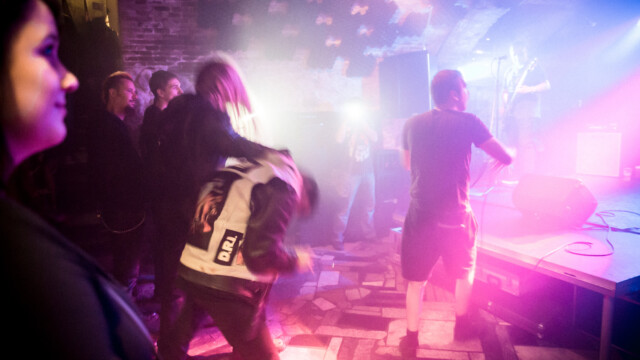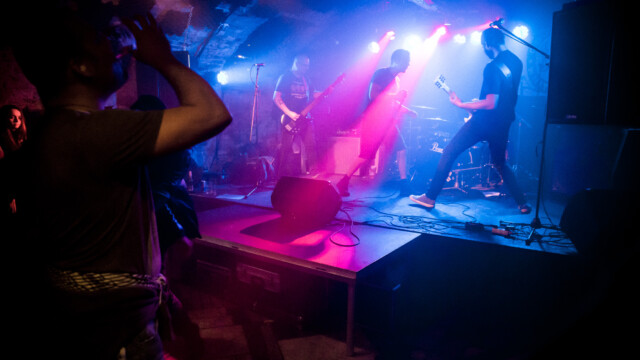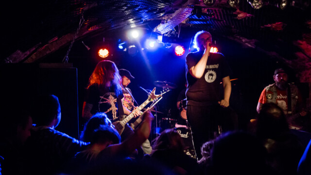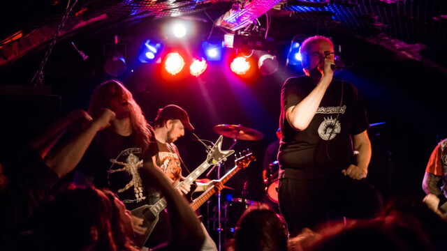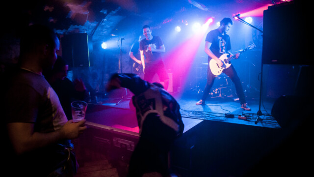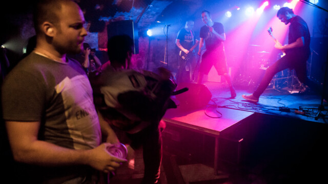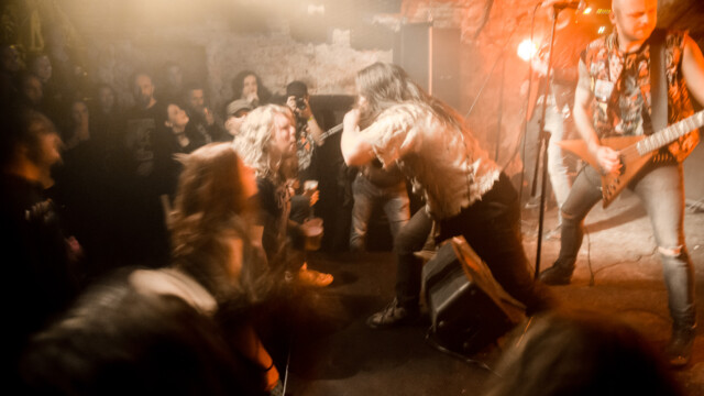 Brány klubu sa otvorili už niekedy okolo siedmej. Prišla som niečo pred ôsmou a privítalo ma nezvyčajné množstvo ľudí. Známe tváre, no aj máničky, ktoré som nikdy predtým nevidela. Vidieť, že thrash metal je znova na vzostupe, čo určite potešilo organizátorov aj účinkujúce spolky. Také množstvo ľudí, aké sa tu tento večer nakumulovalo som ešte v tomto klube nezažila. Už okolo štvrť na deväť, kedy začala hrať prvá kapela bola plnka. Prvými vystupujúcimi tento večer boli punk hardcore z Banskej Bystrice – Pivnica. Už pri prvých tónoch som zostala dosť sklamaná a to hlavne zvukom. Nástroje „vrieskali“, vpredu ohlušujúci nesúrodý zvuk, dokonca sa pár krát stalo, že jedna z gitár počas skladieb pískala, čo asi nebolo úmyslom. Táto skutočnosť však ani náhodou nerozladila pogujúcich fanúšikov. Spevák sa do vystúpenia vžíval z celej kapely asi najviac. Pobehoval po pódiu, párkrát sa objavil aj medzi divákmi, energie mal na rozdávanie. Mňa síce táto kapela až tak za srdce nechytila, ale nevďačnú úlohu prvého účinkujúceho a naladenie na divokú jazdu tohto večera si splnili poctivo.