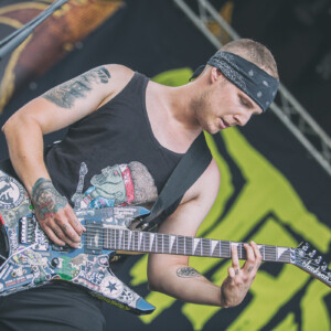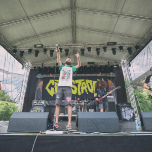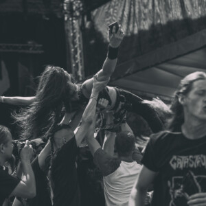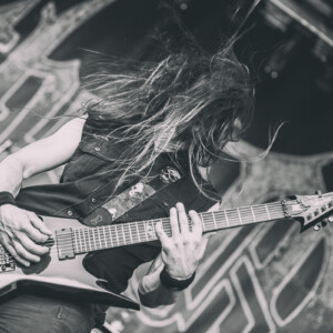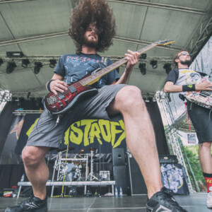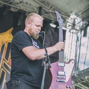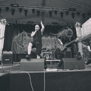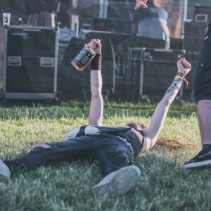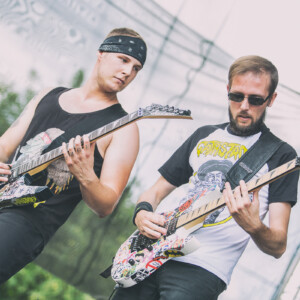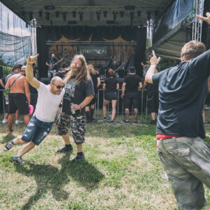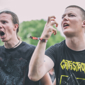 Na pódiu sa hotujú vlajkonosiči slovenského thrash metalu – Catastrofy. Po svojom prevratnom diele s názvom „Zbojnícky tanec“ sa stali známi širokému spektru poslucháčov, od thrash metalistov, cez punkačov, až po mnohých zarytých death metalistov, jednoducho chytili všetkých za gule (za srdce jemnejšie), aj mňa. Spevák Boris to vie roztočiť, takže počas Catastrofy sa konečne „pohli ľady“ a ľudia začali robiť akúsi formu circle pitu, ja som to nazvala ako poobedňajšie podskočenie. Zvuk aj výkony hudobníkov boli samozrejme bez debaty bezchybné. Je vidno, že Catastrofy majú toho už odkoncertované naozaj veľa. Vidieť to na pódiovom prejave, na istote, ktorá im dovoľuje uvoľniť sa. Podľa mňa aj táto ich dobrá nálada, radosť z hudby je jedným z kľúčov úspechu, prečo na nich ľudia vždy pôjdu. Bez zbytočných póz a vážnosti. Azda netreba spomínať setlist, ten sa veľmi nemení, ale boli to „hitovky“ ako „Ja som spokojný, Na detskej oslave, Kazimír, Ančine cecky, Krik a beznádej“ atď. Naozaj vydarený set, snáď so mnou budete súhlasiť.