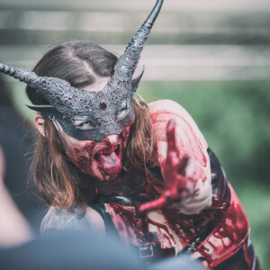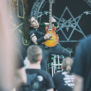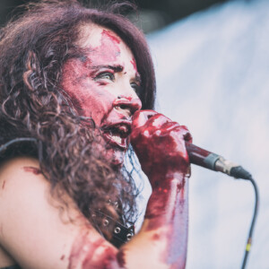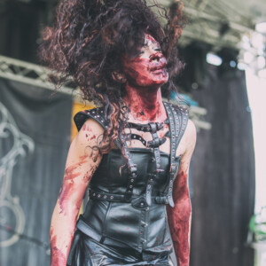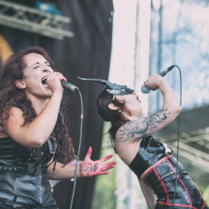 Už to chcelo nejaké to divadelné predstavenie, niečo na čo budú spomínať všetci účastníci, či už v dobrom, či v zlom. Názov skupiny MartYrium môže nabádať na rôzne veci, bude to naozaj martýrium pre sluch aj oči? Určte nie pre oči, hlavne tie pánske. Táto kapela z Malty zaujme hlavne výstredným zovňajškom dvoch vokalistiek, aj warpaintom potretých zvyšných mužských členov. Vskutku obdivuhodné boli pre mňa aj napriek veľkému úpeku dlhé gate aj rukávy (klávesák napr.). Podľa môjho názoru už väčšina z vás videla fotky z ich vystúpenia, no pre tých, čo ich náhodou nevideli…Na pódiu sa na začiatku celého vystúpenia plazila žena, sporo odetá so škraboškou, z ktorej vytŕčali rohy. Všetky tri ženy (jedna len ako showman) boli postriekané umelou krvou. Možno bola trochu škoda, že toto predstavenie sa odohralo cez deň. Prejdime však radšej ku hudbe, ktorá podľa môjho názoru je výnimočná len vďaka dvom ženským vokálom. Growlový hlboký mal poriadnu silu, no čisté vokály zneli veľkú časť falošne. Priznám sa, že popri tejto show som trochu zabudla na kritiku hudobnú, musí sa im uznať, že sa im podarilo ma zmiasť. V podstate však ide o miešaninu black death metalu.
