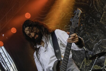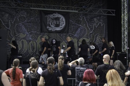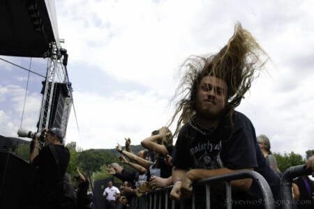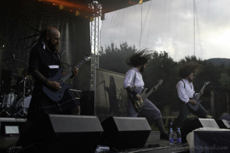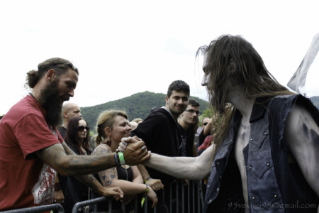 Vraciame sa k vstupu do areálu a chvíľami na nás padne dažďová kvapka. Ale nevadí, rad na pásky nevyzerá byť dlhý. Po chvíli však začína pršať. Nevieme čo robiť, ale zotrváme v rade aj napriek lejaku. Sme mokrí až do morku kostí. VENDETTA FM už na pódiu sype temperamentný hardcore s metalovými prvkami. Ich rodná španielčina v textoch je nesmierne autentická, možno si vďaka nej vždy vybavím Agnostic Front, ale podobne ako aj na Flesh Party, aj tu páni predviedli energický set. Po lejaku opäť vyšlo Slnko a my sme pomaly začali schnúť. Nasledovalo atmosferické predstavenie mladej poľskej formácie ROSK. Páni zladení v čiernych košeliach sa prezentujú nazvime to progresívnym post black metalom. Jemné pasáže sprevádzané klasickým vokálom sa prelínali do valivých post blackových častí. Na ich debutovom CD „Miasma“ som si nikdy neuvedomila, že sú v kapele dvaja vokalisti. To vždy ešte pridá na dynamike, skvelé! Bolo to fakt profi vystúpenie, ktoré podtrhol aj skvelý zvuk sprevádzajúci celý zvyšok festivalu. Chalani sa bavili a aj publikum bolo spokojné. O tejto kapele ešte budeme počuť!