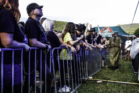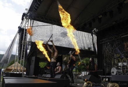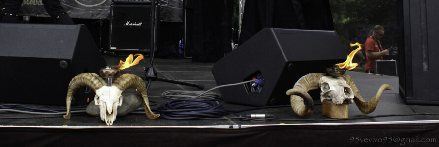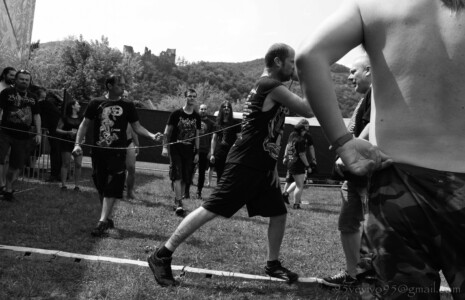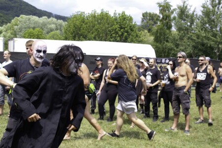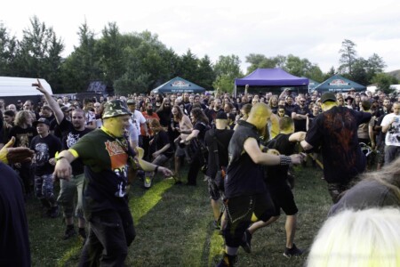 Do areálu vchádzame vo štvrtok okolo jednej. Kemp je jeho súčasťou a keďže prichádzame autom, chalani nás púšťajú cez bránu so zdvihnutým prstom, aby sme sa nezabudli vrátiť po pásky. Najskôr rozkladáme stany, na pódiu sa už pomaly rozbieha česká banda BLOODY OBSESSION. Žiaľ, štvrtkový program začínal už 12:30, takže sme prvé kapely zmeškali. Českú death blackovú formáciu PURNAMA, ktorá štartovala celý festivalový program som videla len nedávno v brnenskej Melodke a verím, že sa im podarilo zahájiť festival pekelnou šou a prišlo ich podporiť mnoho „válečníku“. Čo sa týka BLOODY OBSESSION, aj z diaľky bolo počuť ich klasický valivý, melodický death metal v staroškolskom štýle, ktorý by mi nepochybne ulahodil.