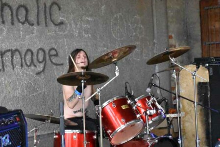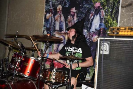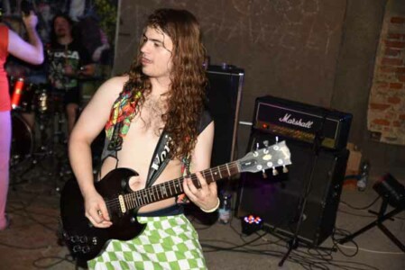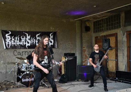 Pódium nezostalo dlho prázdne, lebo vcelku rýchlo nastupuje ďalšia slovenská skupina s pre mňa ťažko vysloviteľným názvom. Som zvedavá, či sa mi ten ich názov podarí dobre napísať teraz – Guzzle Booze. Ide o pomerne mladé zoskupenie (minimálne osadenstvo), ktoré však veľa koncertuje a vďaka tomu ich už poznajú minimálne poslucháči na strednom Slovensku. Ďalším pozitívom bolo, že hneď prvé EP im vydal Support Underground. Hrajú to na thrashovú nôtu novej vlny, takže starí thrasheri si možno zamrmlú. Momentálne v zostave figurujú dve gitary, bass gitara a bicie. Zostavu spomínam zámerne, pretože jedna gitara sa asi v polovici setu chalanom pokazila a zvyšok koncertu už odohrali trochu improvizovane. Niektorí ľudia si to možno ani poriadne nevšimli (haha). Za mňa musím pochváliť bass gitaru, ktorú som dobre počula a zvukovo mi ladila k hudobnému štýlu.