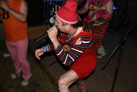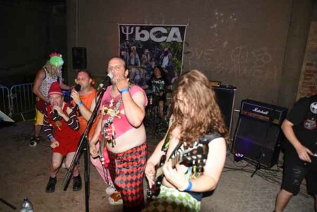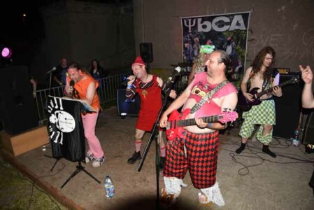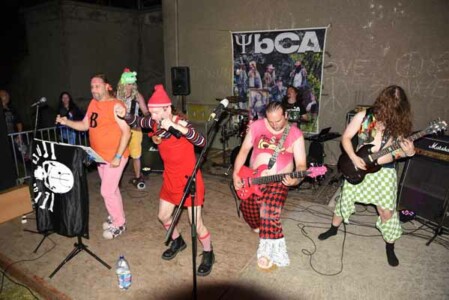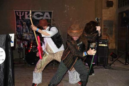 Na záver večera prichádzajú lúpežníci, alebo teda česká all stars rocková kapela YBCA. Ako ich opísať? Myslím, že to musíte proste vidieť. Hudobne si predstavte niečo na spôsob tvrdšieho rocku, možno vzdialene pripomínajúceho aspoň mne Morčatá na Úteku. Textovo skupina vychádza hlavne z kadejakých rozprávok a starších českých piesni, ktoré samozrejme textovo upravuje. Ak ste teda fanúšikmi prerábok niektorých českých „klasických“ kolotočárskych skladieb na rockový spôsob a ujetých kostýmov, narazili ste na tú správnu kapelu. YBCA je teda hlavne o bohapustej zábave a recesii, ktorá niekomu môže a niekomu nemusí vyhovovať. Pre ilustráciu postačia snáď fotky a video, ktoré si môžete pozrieť nižšie.