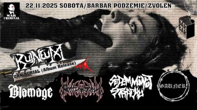 Brujeria len nedávno vystúpila na českom festivale Obscene Extreme, odkiaľ vznikol už aj krátky záznam. Kto si túto show nechal ujsť, no aj tí, čo si videli si ju určite radi zopakujú. Predsa len klub je klub. Ako supportujúce kapely sa predstavia Thorwald a Grinding Jesus Brothers. Posledná menovaná kapela mala niekoľko rokov pauzu a tak máte jedinečnú príležitosť pripomenúť si ako vlastne znejú.