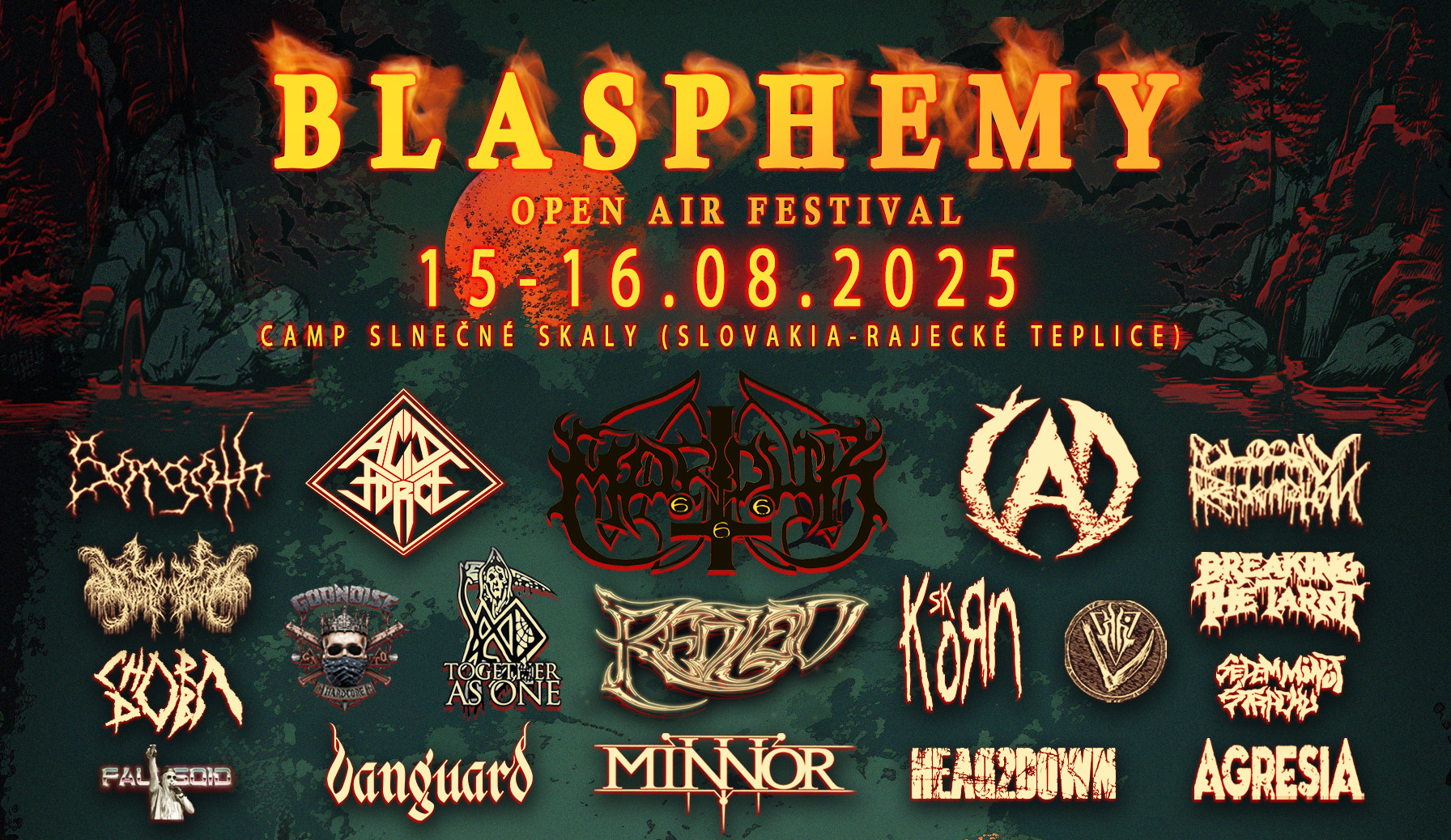Po úspešných klubových podujatiach sa deviata edícia Blasphemy bude konať prvýkrát aj vo forme open-air letného festivalu. Najbližší rok budeme všetku našu snahu a kapacity venovať tomu, aby sme započali niečo výnimočné, čo bude v nasledujúcich rokoch pokračovať a naďalej rásť. V tejto udalosti budú pravidelne pribúdať informácie o prvom ročníku festivalu ako aj o kapelách, ktoré si rozoberieme do najmenších podrobností.