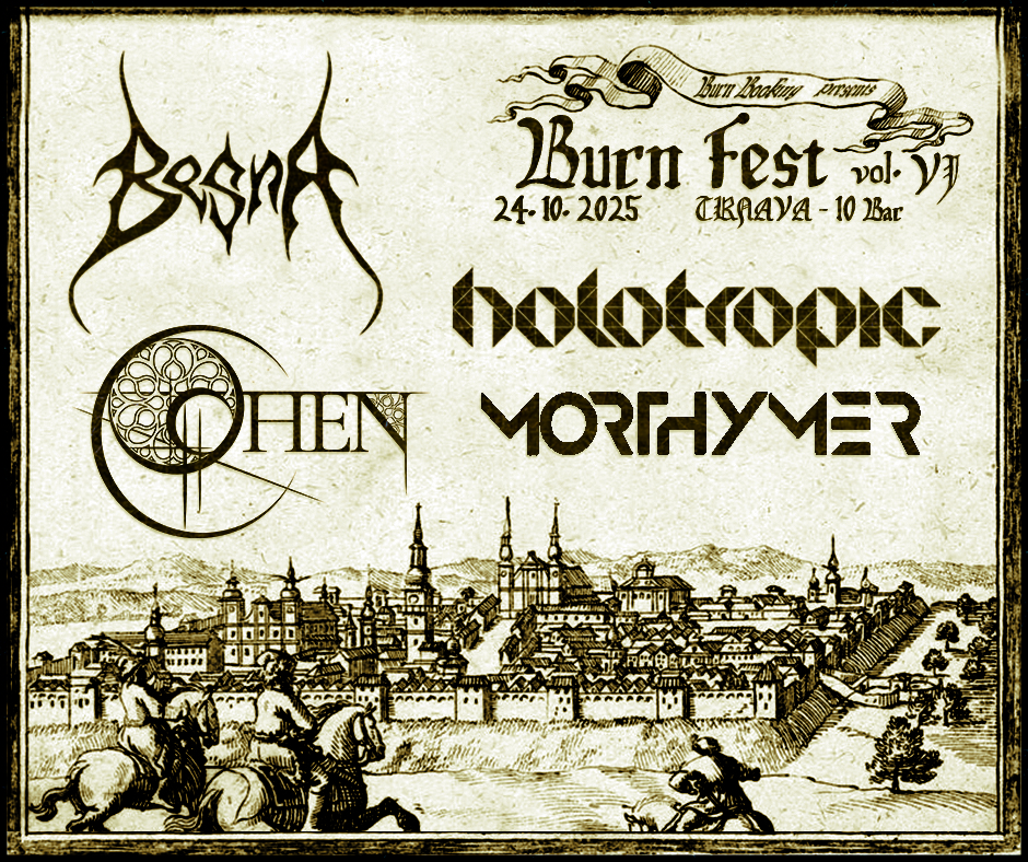 Burn Fest prichádza do trnavského 10Baru so svojou šiestou klubovou edíciou! Metalový večer sa odohrá už v piatok 24. októbra. Tentoraz sa predstaví štvorica slovensko-českých kapiel a pôjde o kombináciu black a progressive metalu. Toto zloženie fanúšikom jemne napovedá aj o smerovaní letného Burn Fest Open Air III.
