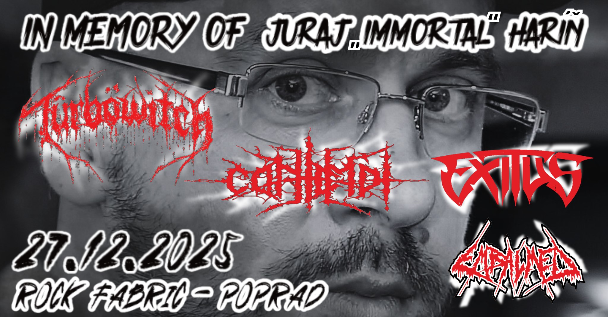 niekde spáliť kalórie po kapustnici, rybe a šaláte, čo tak vybehnúť do Popradu? Tento koncert nebude iba takou hocijakou nutnou potrebou dostať kakofóniu do vášho sluchu. Za touto akciou stojí myšlienka spomenúť si na Juraja Haríňa, ktorý nás opustil až príliš skoro. A spomínať sa na neho bude prostredníctvom death a thrash metalu. Len pred pár dňami prišlo k zmene v zostave, keď Švédov One Day in Pain, ktorí sa ospravedlnili, nahradili uctievači totálneho old school thrash/speed metalu z Maďarska – Turbowitch. Po ich boku vystúpia dve slovenské death metalové kultovky – Contempt, ktorí majú teraz vonku nový album Portal a znovuobnovení Ružomberčania Embalmed. A aby bola žánrová zmes vyvážená, tak z Ostravy dofrčia ďalší thrasheri Exitus.