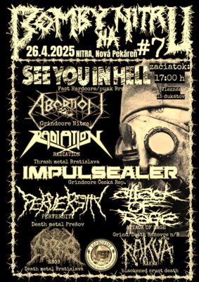 Už tradične som si navštívila a užila si túto vynikajúcu akciu, ktorou som bola súčasťou aj na pódiu. Program podľa môjho gusta od začiatku do konca. Všetky kapely podali dobré výkony, no nezabudnem hlavne na vystúpenie See you in Hell. To lietal mikrofón aj ľudia. So See you in hell sme si potom dali repete aj v Žalári. Títo Moraváci to proste vedia roztočiť. Tento koncert bude pravdaže aj tento rok a je zverejnený aj celý line-up, takže ak máte radi grindcore, death metal, či thrash, určite sa Bomby oplatí navštíviť. Line-up na tento rok je luxusný, však usúďte sami.