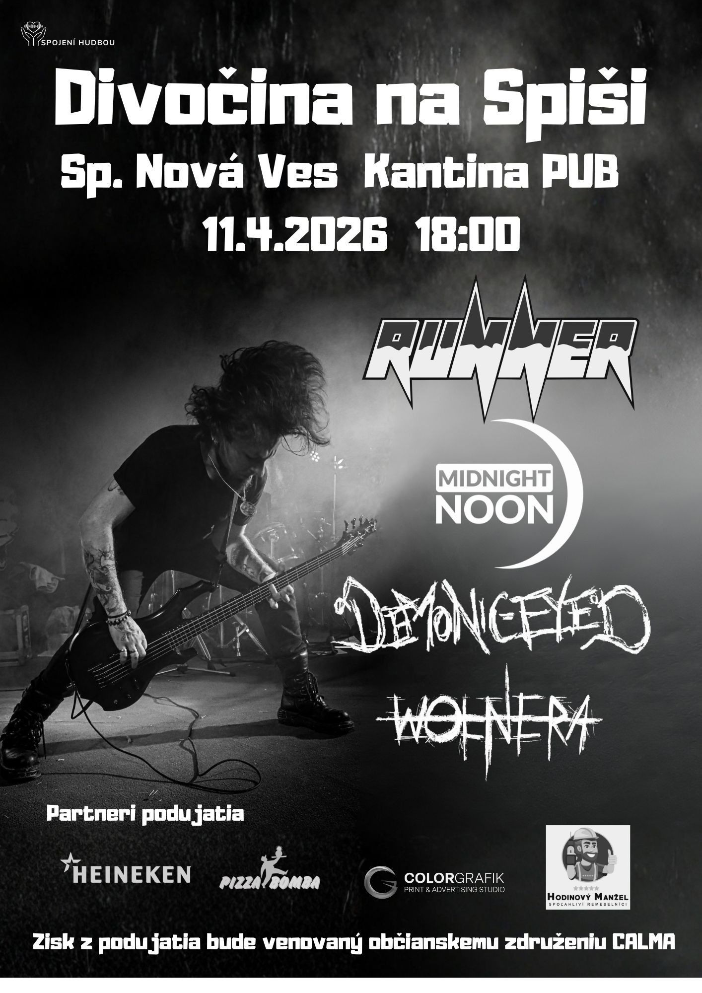 SPIŠSKÁ NOVÁ VES – Novoveská metalová scéna sa opäť prebúdza a tentoraz to nebude len o hlučných gitarách, ale aj o silnom geste solidarity. Občianske združenie Spojení hudbou z Banskej Bystrice prináša ďalší benefičný koncert pod značkou Divočina. V sobotu 11. apríla 2026 sa v priestoroch Kantina Pubu uskutoční podujatie s názvom Divočina na Spiši. Profit z podujatia bude venovaný občianskemu združeniu Calma, ktoré sa venuje pomoci ľuďom so skúsenosťou s duševným ochorením.