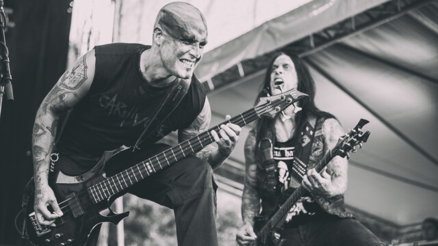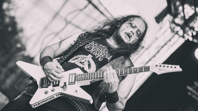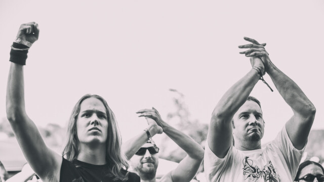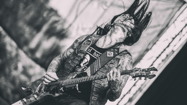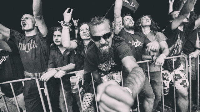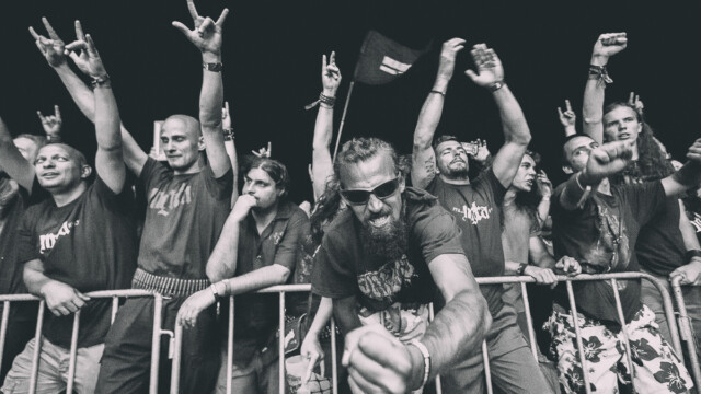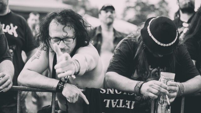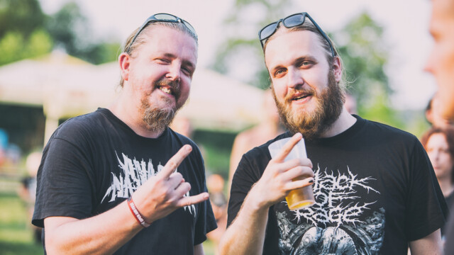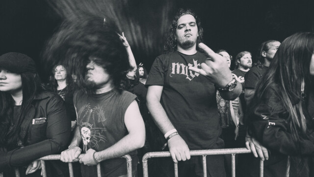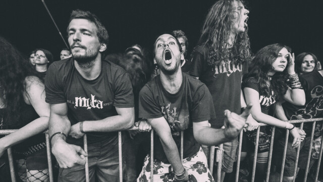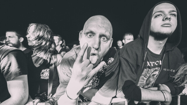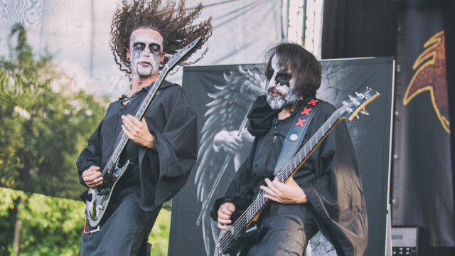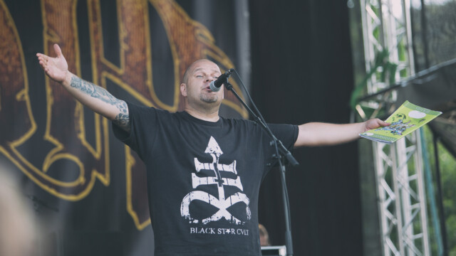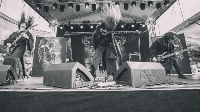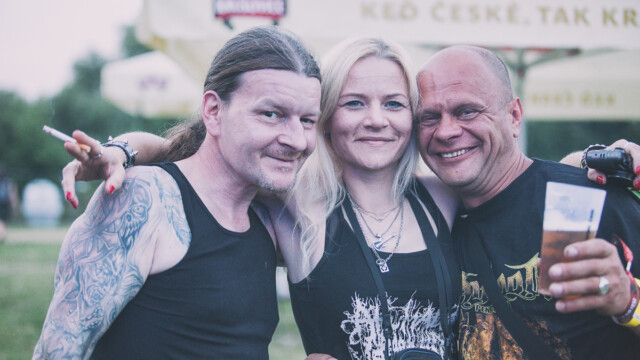 O to sa postarali po Nemcoch dnes už preslávení Poliaci – Mgła. Priznám sa, že až do nedávnej doby to bol pre mňa neznámy pojem. Až potom, ako sa z pôvodne štúdiového projektu stáva live, a po vydaní albumu Exercises in futility je o nich čoraz viac počuť. Minuloročné vystúpenie na Brutal Assaulte mnohým ľuďom zarezalo do živého, niektorými avšak nepohlo. Práve rozporuplnosť býva pre mňa známkou toho, že nepôjde o obyčajnú black metalovú kapelu, ktorá by nemala čo ponúknuť. Nad areálom sa už rozhostila úplná tma, pódium bolo osvetlené do modrých farieb. Keď bolo všetko naladené, prichystané, na pódium sa dostavili traja hudobníci, s tvárami zakrytými čiernou látkou. V jednom z rozhovorov sa o tomto elemente vyjadrujú nasledovne: „Nosíme mikiny a kožené bundy, čo z nás robí na nerozoznanie od 90 percent divákov – jediný rozdiel je, že naše tváre sú zakryté. Hľadáme uniformitu, aby sme odstránili ego osoby a nenechali v nás nič iné ako vlastnú osobnosť – z tela sa stane nástroj. Na pódiu nie sme jednotlivci, sme všetci jednou jednotkou.“ Jednoducho, u Mgła nejde len o hudbu, tu ide aj o filozofiu, nihilizmus, mizantropiu, temnotu…nie je to pre mnohých ľahko stráviteľná záležitosť a určite tu nemožno hovoriť o nejakej prvoplánovosti, či už na stránke hudobnej, či obsahovej. Areálom sa teda začali rozliehať prvé zlovestné tóny, ktoré rezali do živého. Celé vystúpenie bolo odohraté čisto, bez pre mňa rušivých elementov a z hudby som aspoň ja cítila obrovskú surovosť. Mali sme možnosť vypočuť si nie len posledný album, hralo sa aj zo staršieho z roku 2012 – „With hearts toward one“, ale napríklad aj skladba Groza. Kto na tomto vystúpení bol, snáď mi dá za pravdu, že to malo v sebe temnú, ťaživú a silnú atmosféru, ktorá sa podarila dosiahnuť Mgła ako prvým za tento večer.
