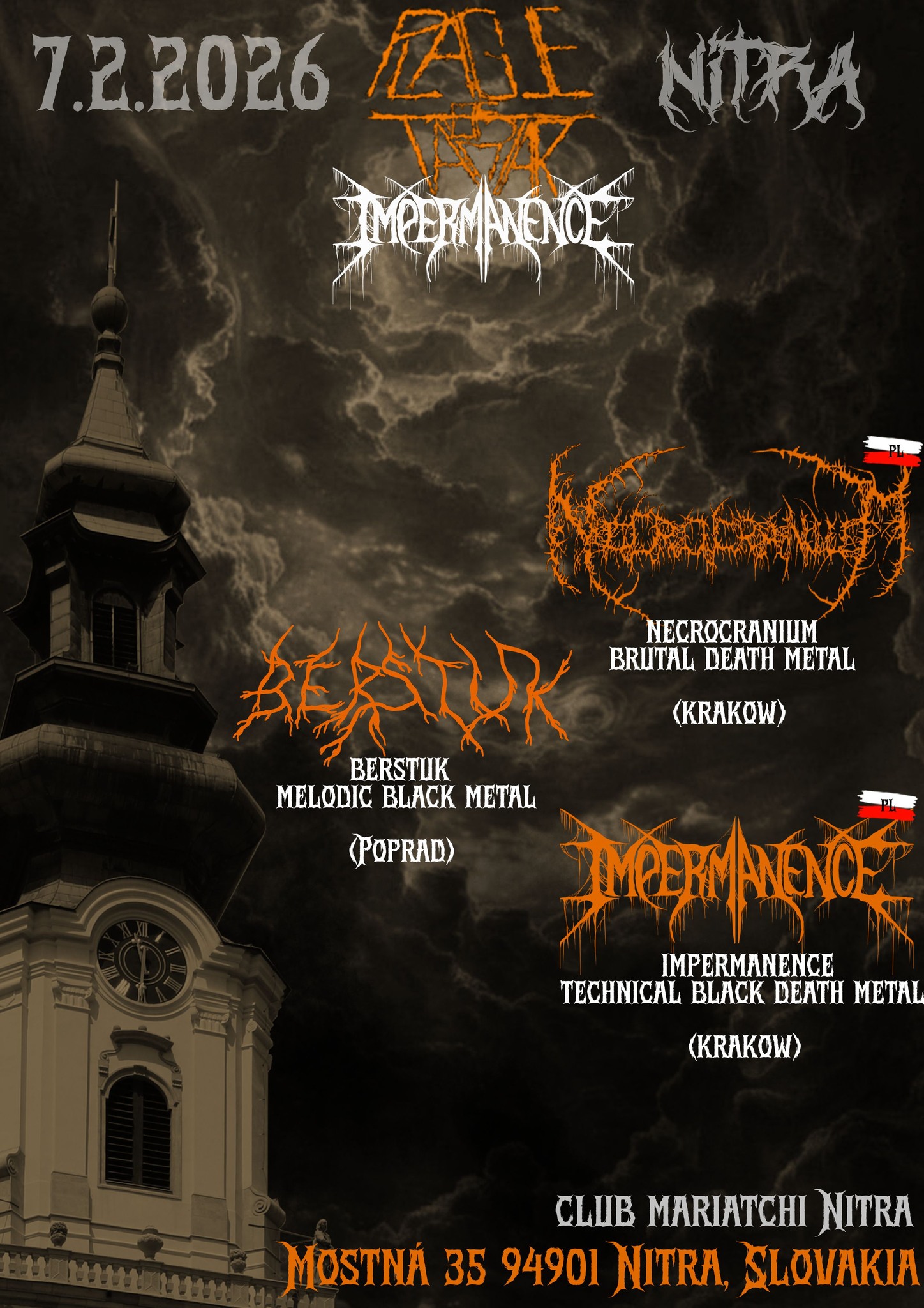 Poľská kapela Impermanence už tento február zavíta opäť na Slovensko. V rámci tour Path of Disolussion a Plague of Tartar bude naša prvá zastávka klub Mariatchi v Nitre. môžete sa tešiť na: Impermanence (PL): Technical black/death metal kombinujúci extrémnu presnosť, chaotické štruktúry a temnú atmosféru. Brutálna a komplexná jazda bez kompromisov. Necrocranium (PL): Necrocranium servírujú […] |